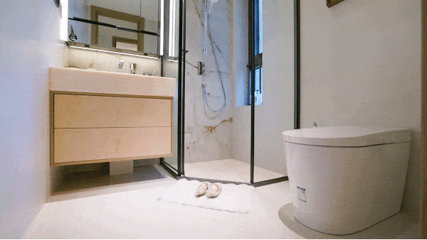 正在公区打制的用材和细节等层面,入户玄关柜带可调理层板和鞋柜精灵。